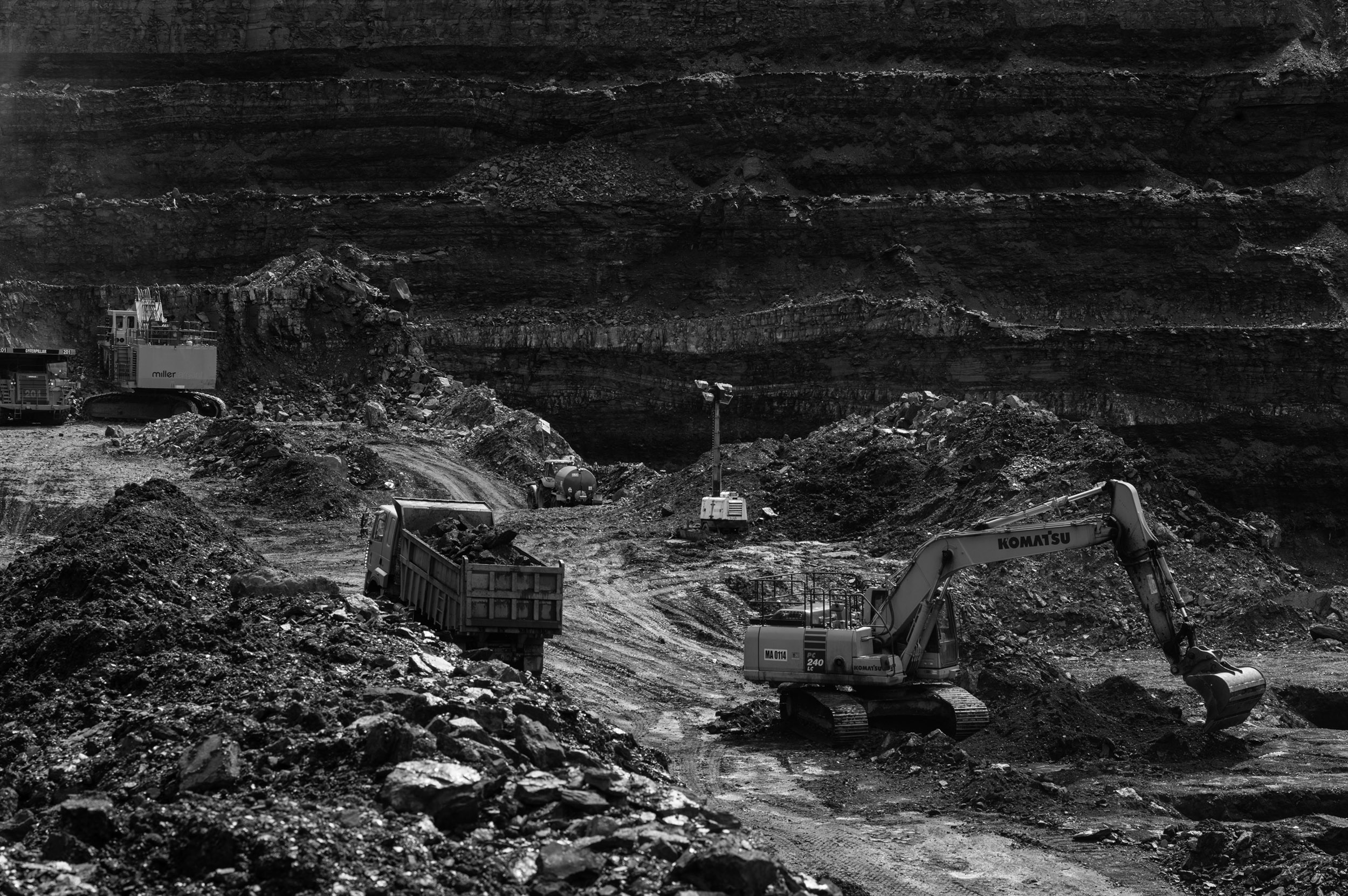 Open cast coal mining on the edge of the South Wales coalfield at Ffoss-y-Fran near Merthy April 2016. The open cast mine is operated by Miller Argent is threatened with closure. Most of the coal goes to the Aberthaw Power station but due to EU emission initiatives that may soon stop, as the coal is deemed too high in nitrous oxide. The Uk has committed to end power generation by coal by 2025.