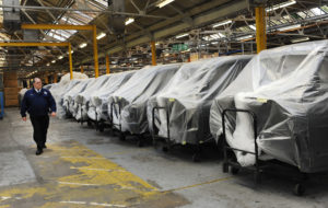 The London Taxi Company in Coventry, UK. The London Taxi Co. produces the iconic London Cab and was saved from the administrators by the Chinese company Geely Automotive who are expanding and investing in the iconic brand.